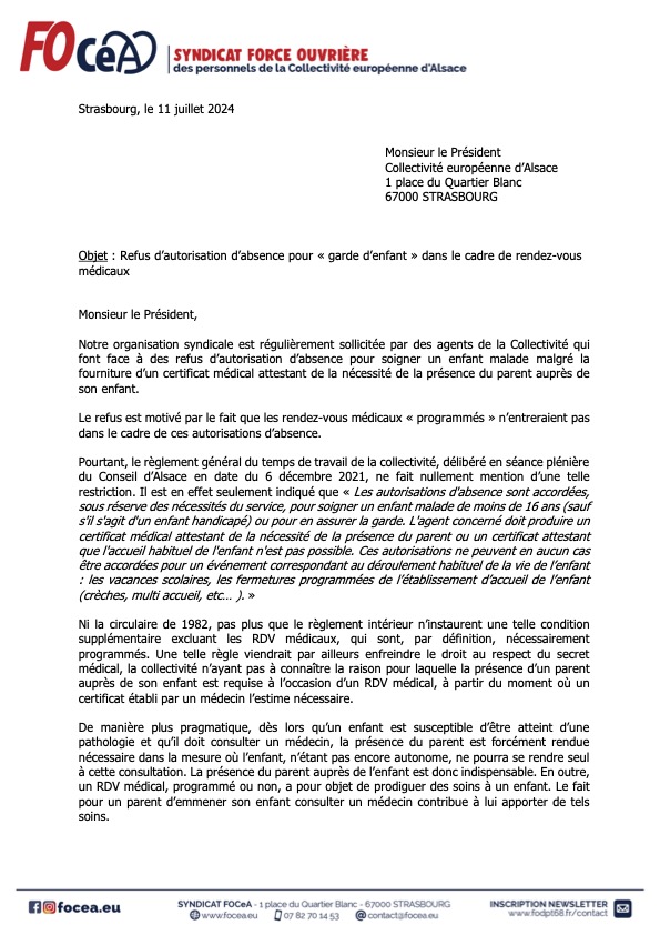 Par courrier en date du 26 novembre 2025, nous avons adressé une nouvelle demande au Président BIERRY afin qu’il permettre aux ASFAM de bénéficier des titres-restaurant pour chaque journée de travail incluant leur repas, dans la mesure où ceux-ci n’ont bien évidemment pas accès au restaurant administratif de Strasbourg :